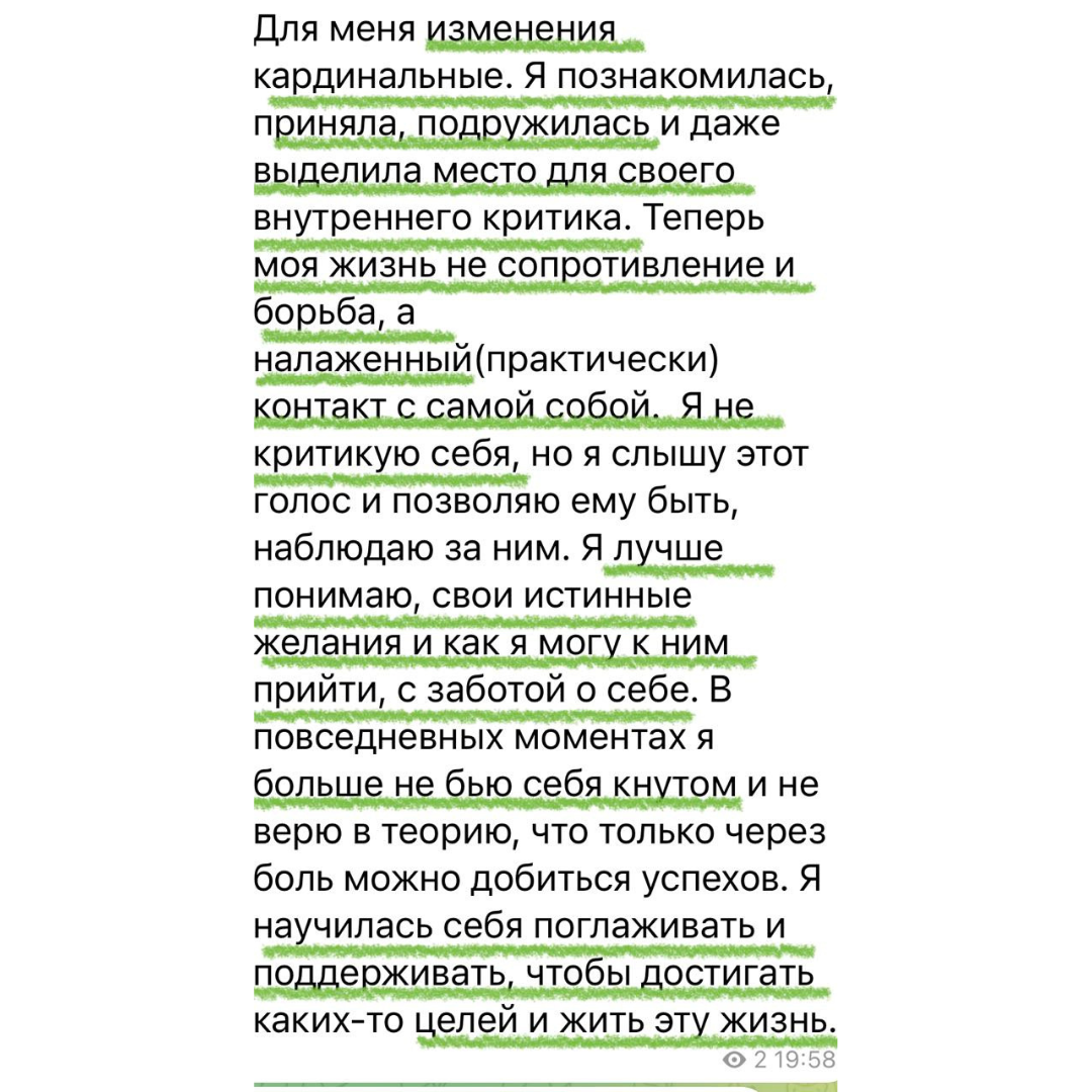 - “Научилась быть себе любящим родителем – без назидания, критики, напряжения”